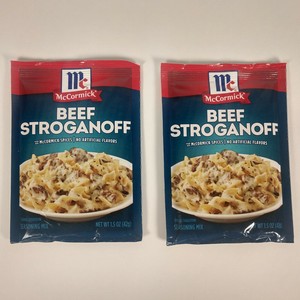 Ingredients | Mccormick Beef Stroganoff Mix Discontinued1 (10.75 ounce) can condensed cream of mushroom soup½ cup water, or more as needed1 (1 ounce) package dry onion soup mix1 pound cubed beef stew meat4 ounces cream cheeseDirectionsWhisk cream of mushroom soup, water, and dry onion soup mix in a slow cooker; stir meat into soup mixture. Cover and cook on High for 1 hour. Reduce setting to Low and cook until beef is tender, 2 to 3 more hours. Test for doneness after 2 hours. Stir cream cheese into beef until smooth.Info | Mccormick Beef Stroganoff Mix Discontinuedprep: