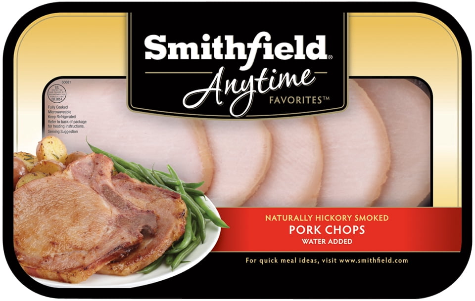 Ingredients | Smithfield Smoked Pork Chops Recipes4 thick-cut pork chops1 teaspoon Montreal steak seasoning, or to taste½ cup butter, divided2 ½ tablespoons all-purpose flour, or as needed1 tablespoon dried basil1 teaspoon instant beef bouillon granules1 teaspoon freshly ground black pepper2 cups milkDirectionsSeason pork chops on all sides with Montreal steak seasoning.Melt 2 tablespoons butter in a large skillet over medium heat. Cook chops in melted butter until browned and slightly pink in the center, about 7 to 10 minutes per side. An instant-read thermometer inserted into the center should read at least 145 degrees F (63 degrees C). Add remaining butter to the pan as needed so that about 3 tablespoons pan drippings remain in the pan when the chops are finished cooking. Transfer pork chops to a plate and return skillet to medium-high heat.Mix flour, basil, and beef bouillon together in a bowl. Stir black pepper into skillet with the pan drippings and cook for 1 minute. Add flour mixture and cook, stirring constantly, until browned, about 2 minutes. Pour milk into flour mixture; cook and stir constantly until mixture is thick and bubbly, 4 to 6 minutes. Pour sauce over pork chops and serve.Info | Smithfield Smoked Pork Chops Recipesprep: